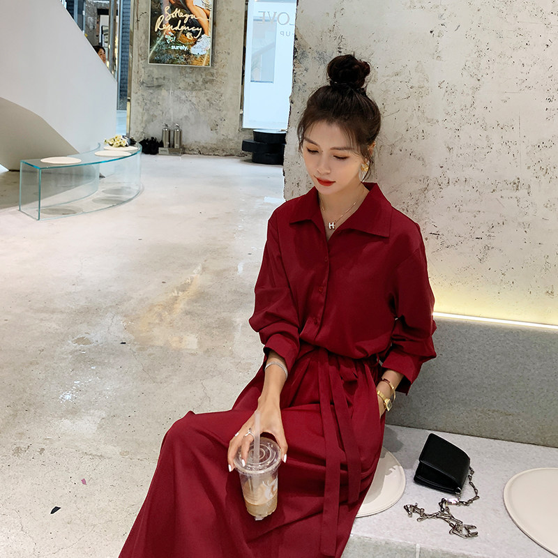 Gestational Woman Dress Style Long Dress 2020 Autumn-Style Boomer Mid-Late Pregnant Woman Skirt Han Version Loose Retro Shirt Skirt Long Sleeve