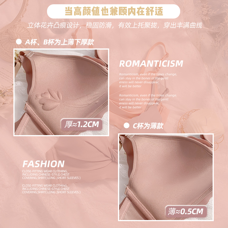 Thin underwear women's small chest gathered adjustable anti-sagging bra no steel ring girl sexy bra pant suit