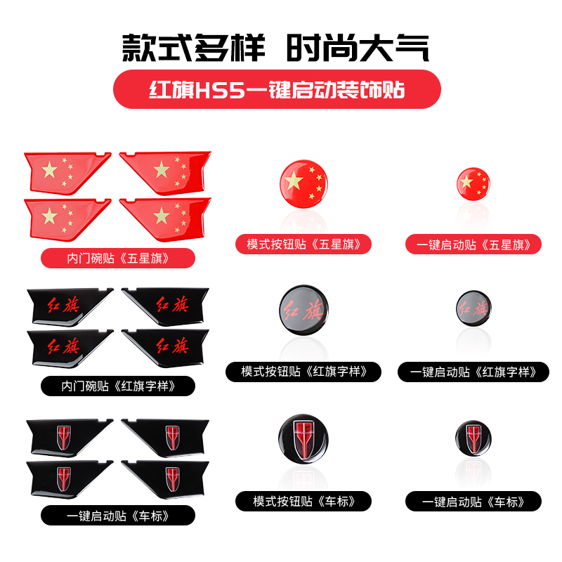 Red flag HS5 mid-control knob sticker interior retrofit one-key start inner door Bowl Drop Glue Patch HS5 Special Decoration Sticker