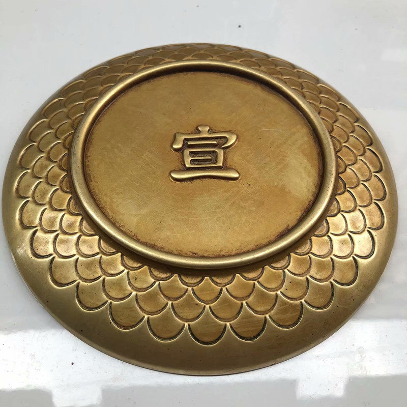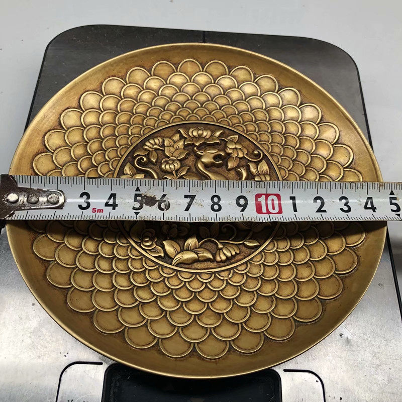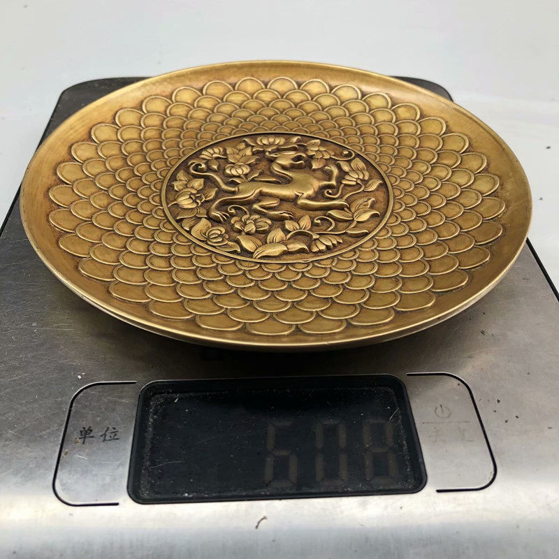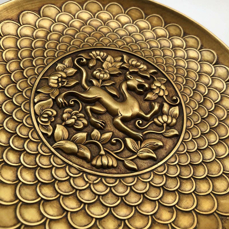 Retro Boutique Bronze Ware Antique Ancient Play Miscellaneous Four Major Beasts Relief Copper Disc Xuancalligraphy Bottom Thickening Increased