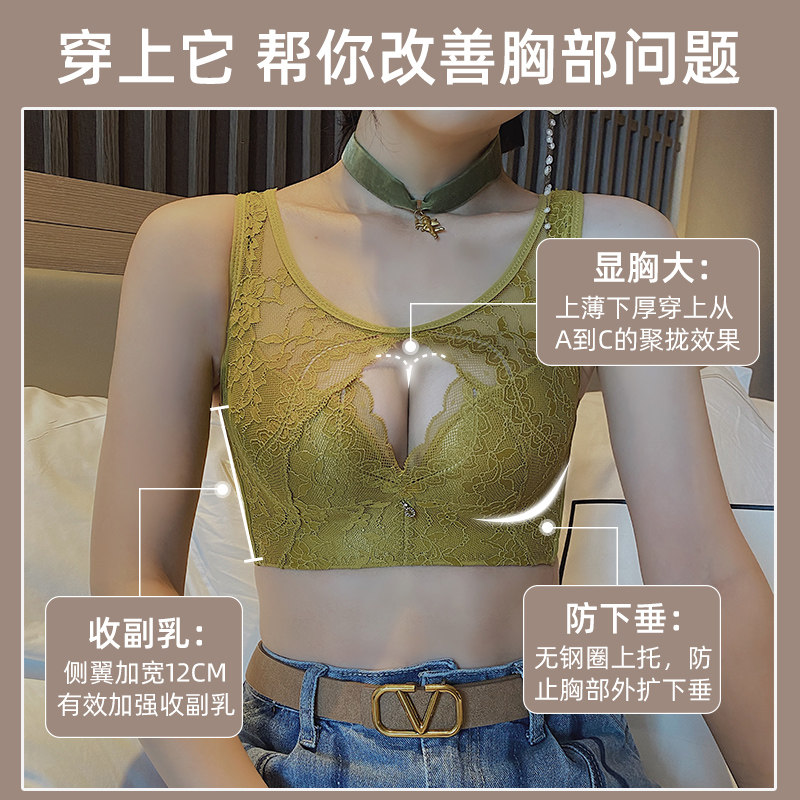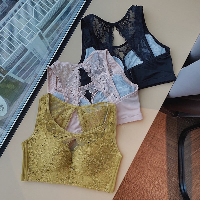 Flower Rock Small Breasts Coalfield With Underwear Woman Thin section Breasted Without Steel Ring Meme Back Bra Closeted Breast adjustment Type of upper-care bra