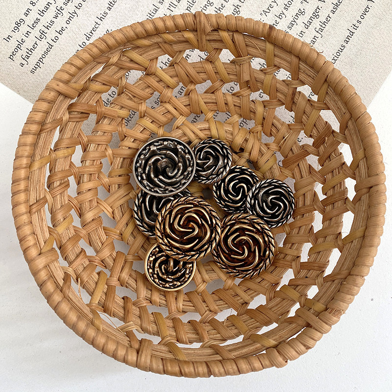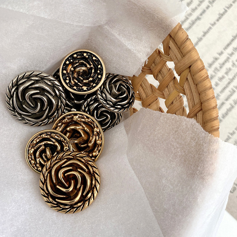 YOMOSTUDIO small fragrant style metal coat button retro rose decorative buckle double-sided nylon coat sweater button