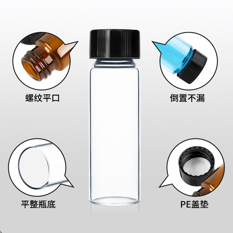 Following Philosophy Glass Reagent Bottle Transparent Brown Snail Mouth Chemical Sample Bottle 3 5 8 10 15 20 60ml Serum Bottle Gland Jaw Top Air Bottle Incoming bottle Chromatography Bottle Split Bottle Bottle Pe Cover Mat