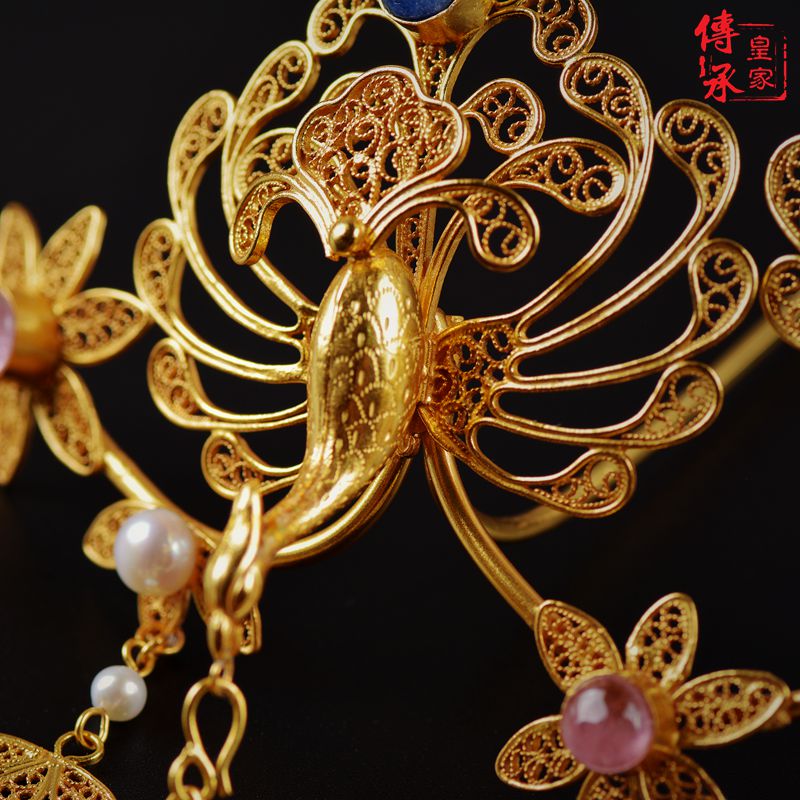 Yi Feng title Pearl Crown of Tang and Song Ming Dynasty Hair Accessories of Ke Sub-hair Hairpin Hanfu Accessories