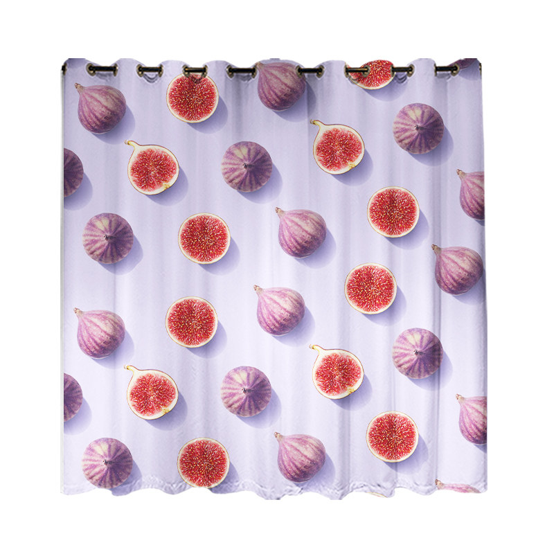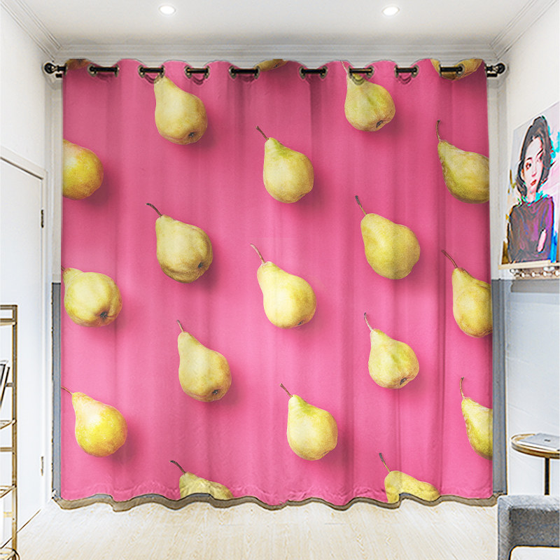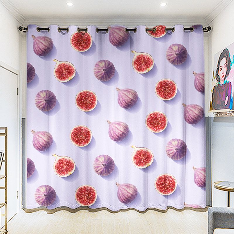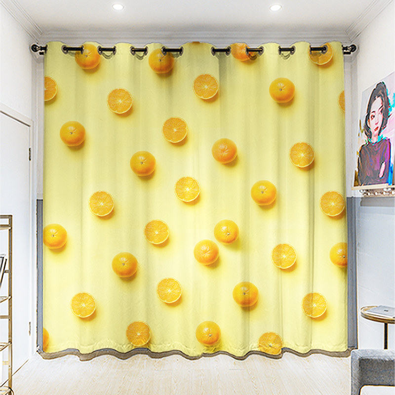 Custom long curtain hemp fruit printing bedroom living room balcony student bedroom full blackout punch hook curtain cloth