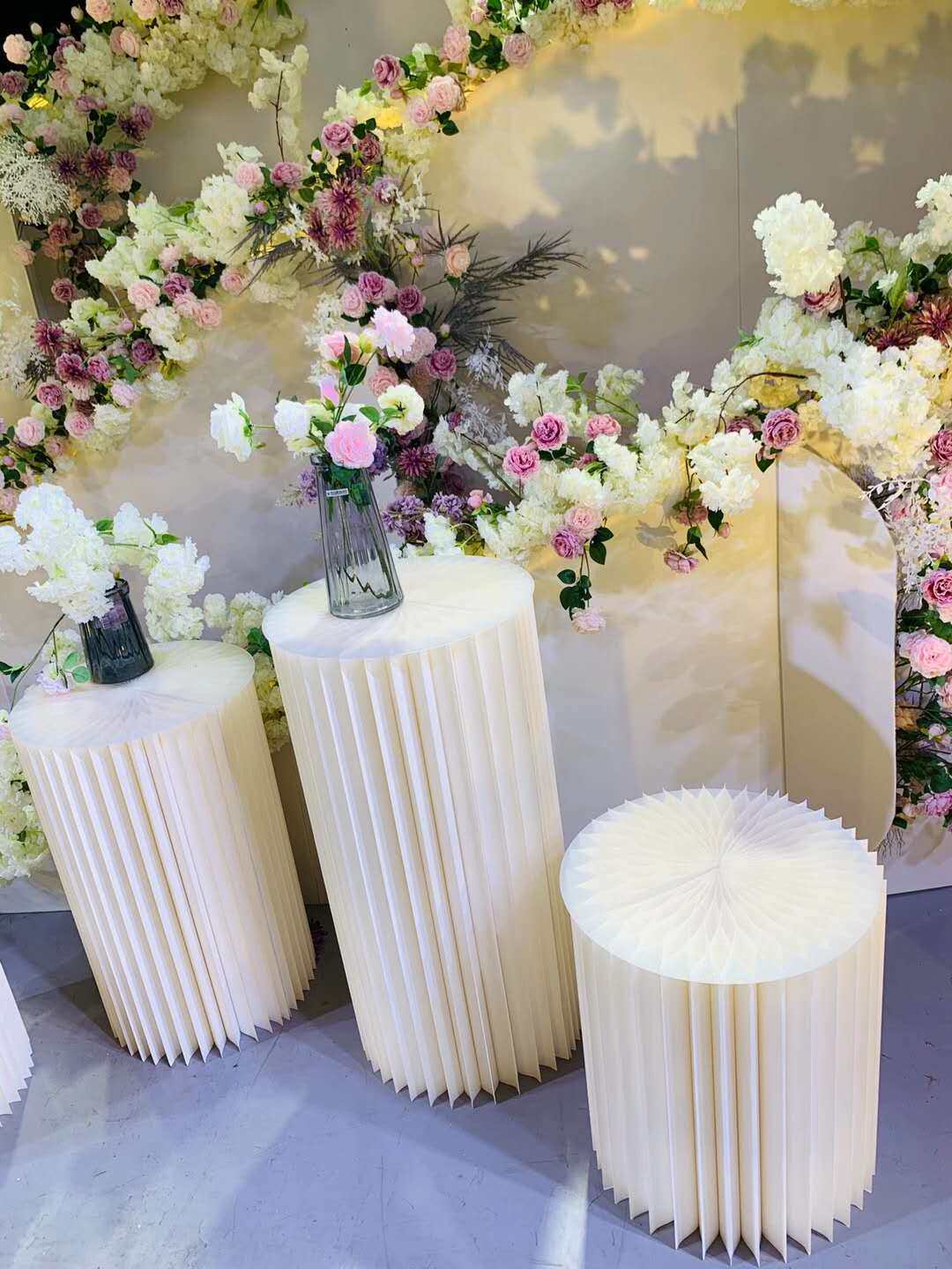 Wedding pearl origami cylindrical dessert table folding Roman column round table decoration wedding road lead window booth props