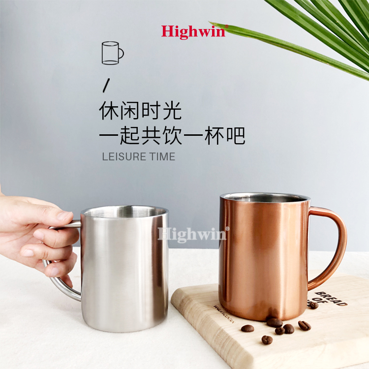 Double Layer 304 Stainless Steel Thermal Insulation Water Cup Coffee Mark Cup Home Outdoor Anti-Fall With Handle Cup