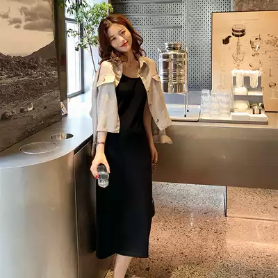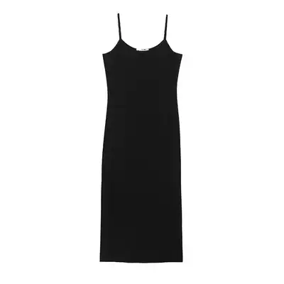 77store black sexy suspenders dress women wear autumn and winter new medium and long version of the inside with the bottom skirt