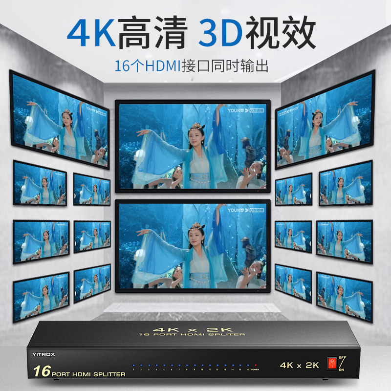 Yue Chuangxing HDMI allocator 1 in 16 out 1 point 16 16 HD allocator 4K large screen splicing