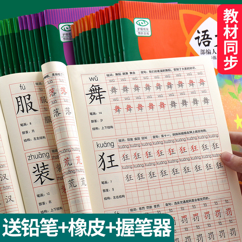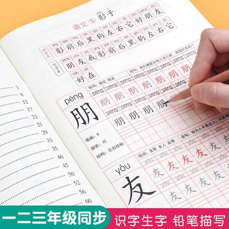 First grade Second grade Third upper book Next book Copybook Primary school students practice words for beginners Daily practice Chinese characters Textbook Chinese new words Synchronous red people teaching edition Writing practice books for children Regular books