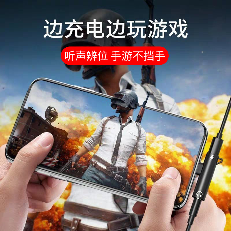 Mobile phone eat chicken 3 5mm audio converter applicable Apple headphone adapter flat head turning round head iPhone11 xr x 8 7 charging two-in-one 8p live connector jack one