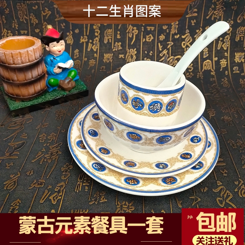 Mongolian bowls, plates, spoons, Mongolian tableware sets, Mongolian yurts, dishes, flat plates, tableware supplies, large discounts