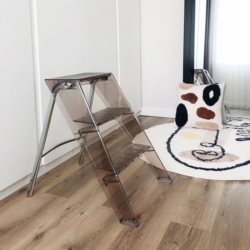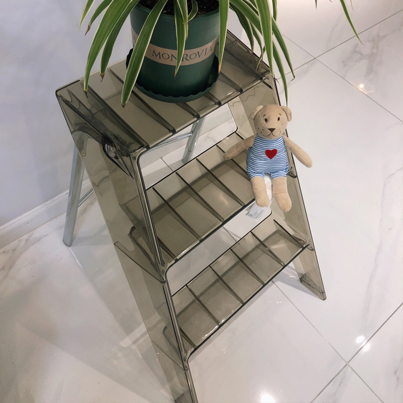 Transparent household ladder collapsible indoor three-step ladder non-slip pedal ladder ghost chair acrylic bookshelf flower frame