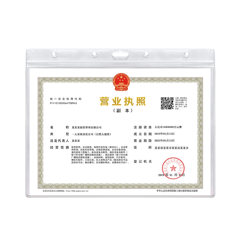New version of the business license frame Industrial and commercial copy of the health license protective sleeve Wall sticker certificate A3 display stand
