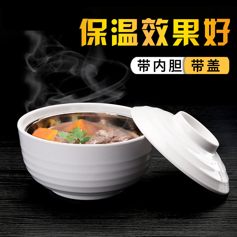 Tai Shun A5 Melamine 6640 Soup Flush Imitation Porcelain Steamed Egg Flush Thickening With Lid Soup Flush Stainless Steel Liner Dish Flush Suit-Taobao