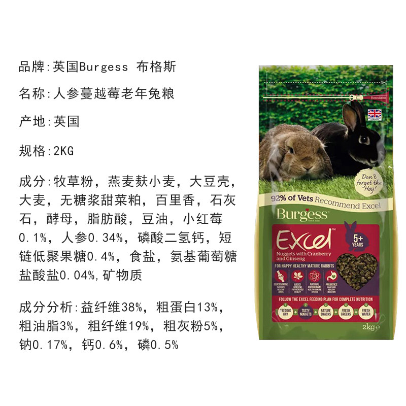 Buggs aged rabbit food 2KG American Ginseng Cranberry Adult rabbit food Staple rabbit feed Rabbit food Rabbit food