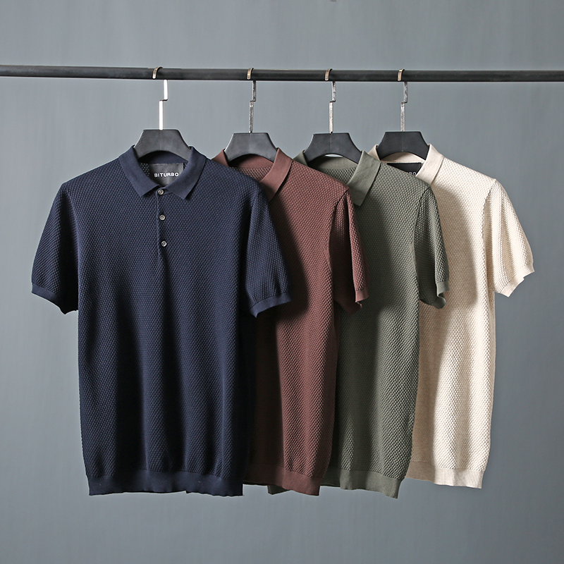 ODM single stereo pineapple knit cut calf stock male high-end knit short sleeve half sleeve turnover POLO shirt
