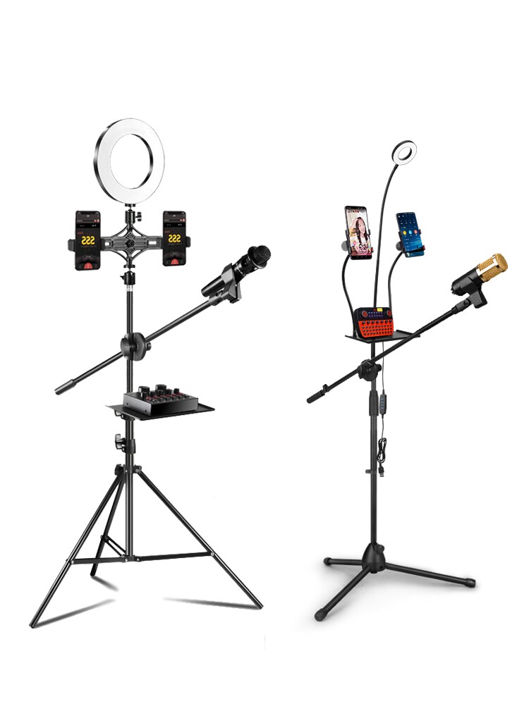 Mobile phone live broadcast bracket beauty fill light microphone microphone three-legged floor-to-ceiling tripod integrated home singing