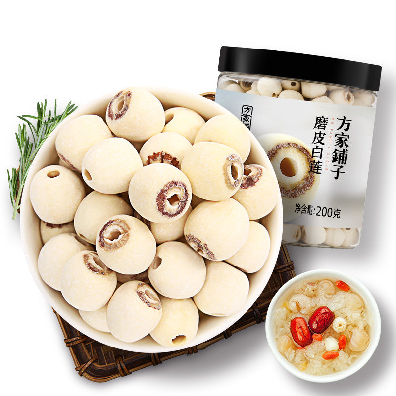 Fangjia Shop began in 1906 with a peeled white lotus seed dry goods to remove the core 200g dry lotus seed lily silver ear soup non-special grade