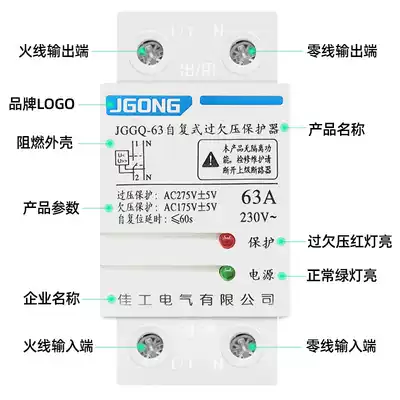 Jiagong self-compound over-voltage protector 220V delay automatic reset switch phase loss power-off household 40A60A
