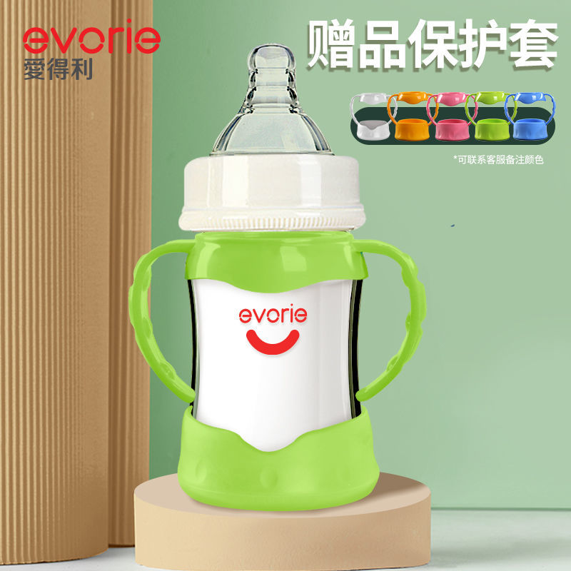 Love-to-milk bottle 1-2 years old Children's large capacity glass straw cup 300ml anti-fall and wide mouth baby weaning