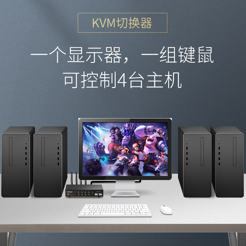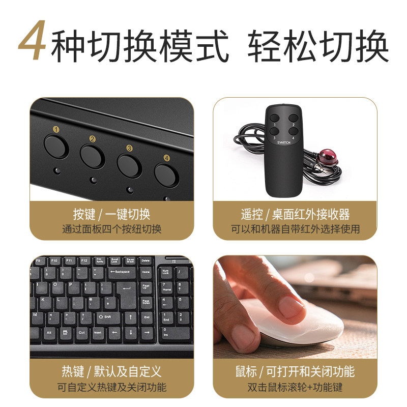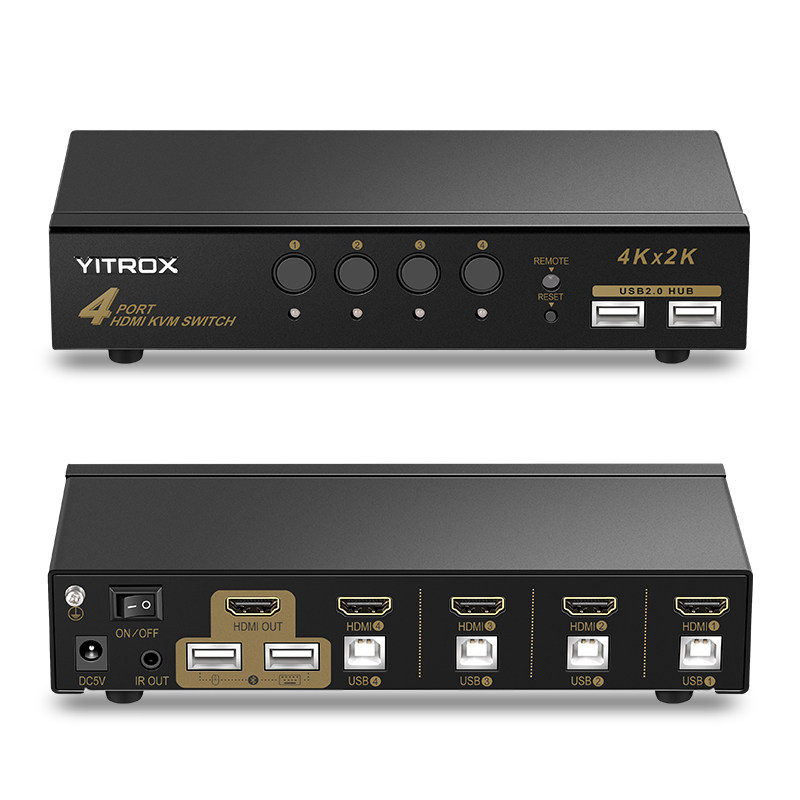 Yue Chuang Hing kvm switch 4 port hdmi four in one out 4 computers shared with a set of mouse keyboard monitor remote control keys hotkey switching HUB splitter 4k HD