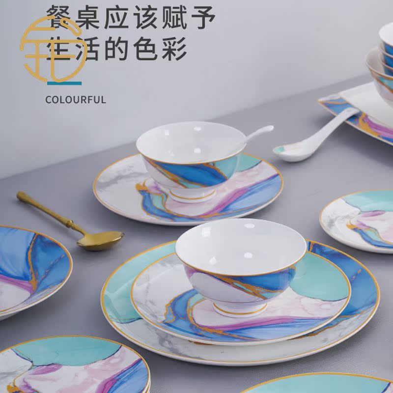 Bo Yuechen bowls and dishes tableware set for household Jingdezhen ceramics American high-end dining room banquets and gifts bowls and chopsticks plates