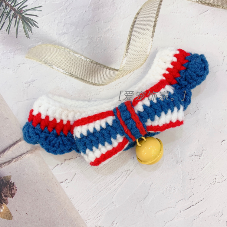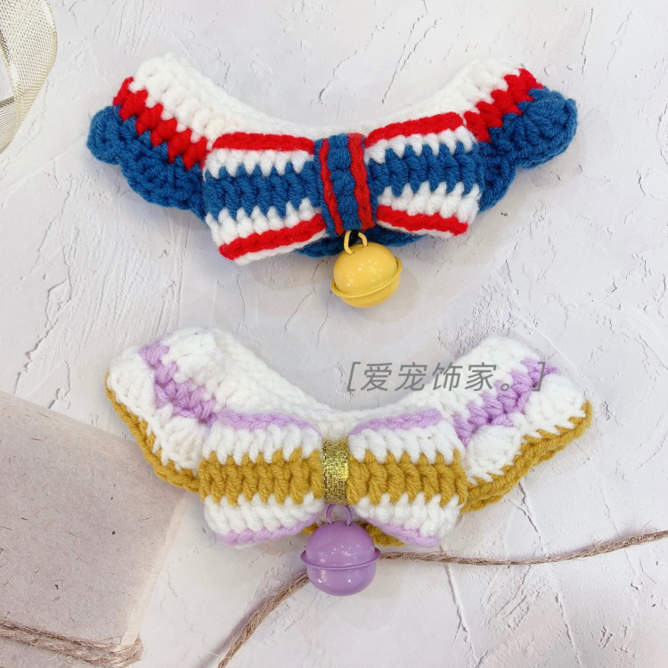 Pure hand knitted bow bell cat collar scarf large and small dogs dog pet bow tie scarf