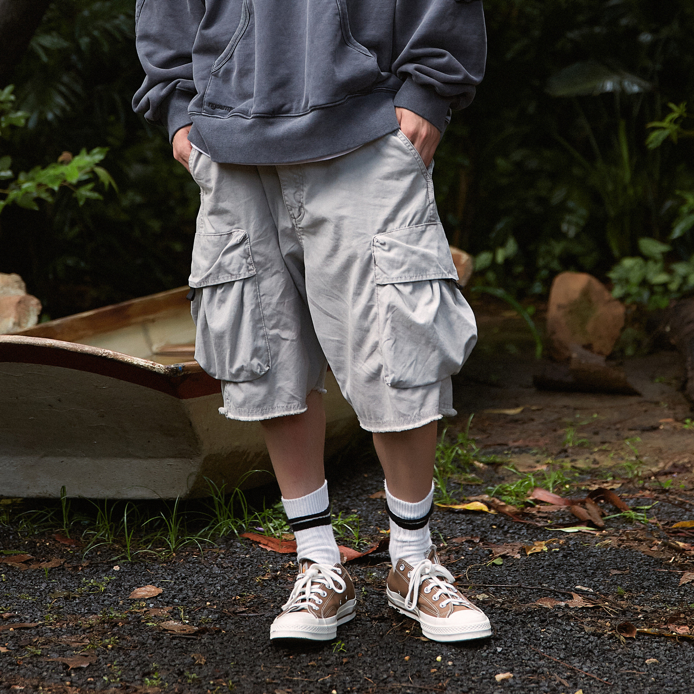 NGOARMY summer Joker three-dimensional big pocket batik wash do old military vintage shorts loose Yu Wenle