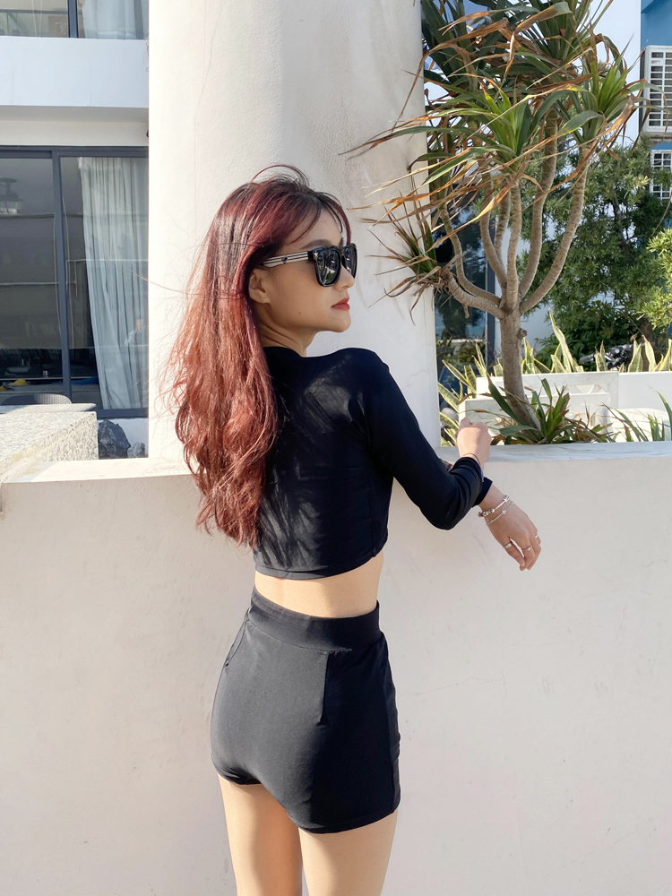 Swimsuit women's summer 2021 new sunscreen long-sleeved split slim flat angle conservative swimsuit fairy fan student