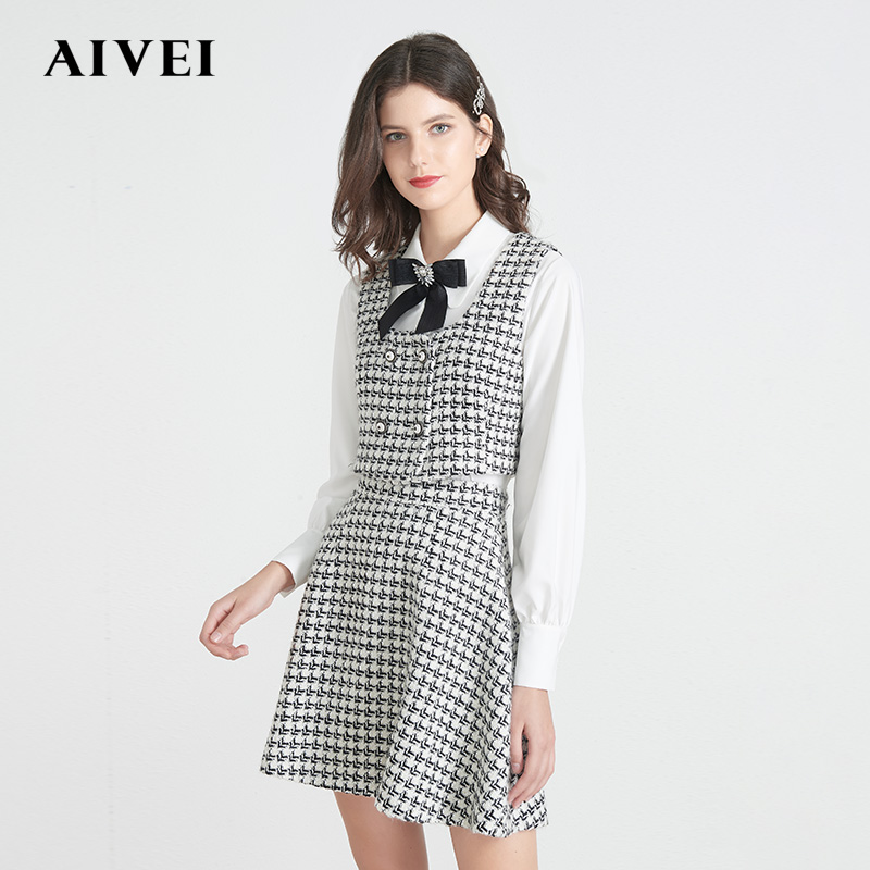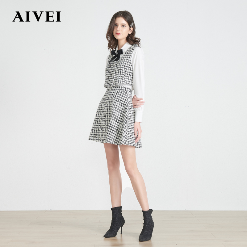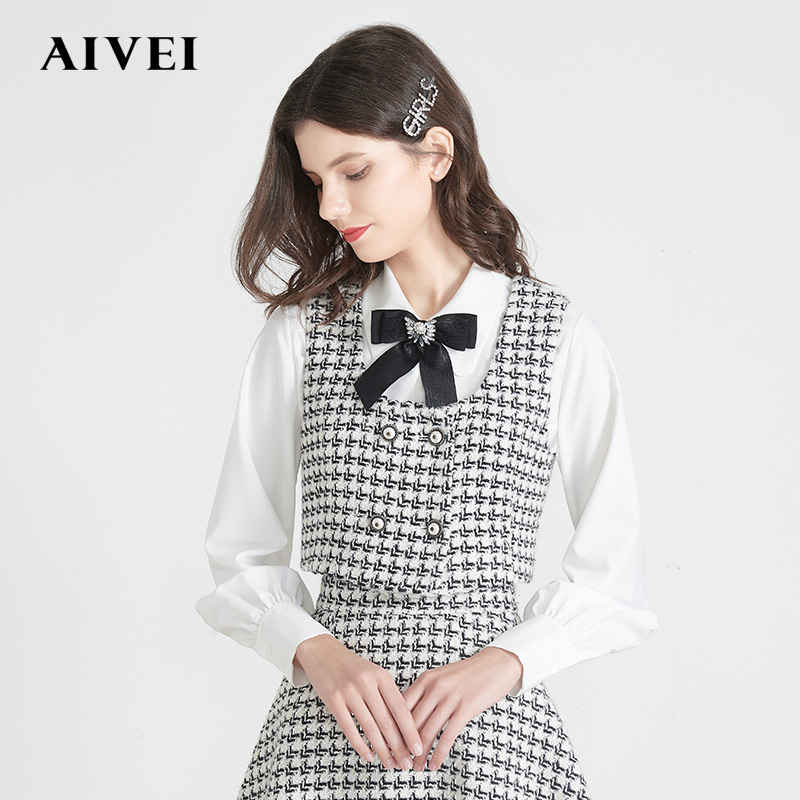 AIVEI Hinca Ai Weichun New Retro Thousand Bird Gwaistcoat Waistcoat Shirt two sets M0660144