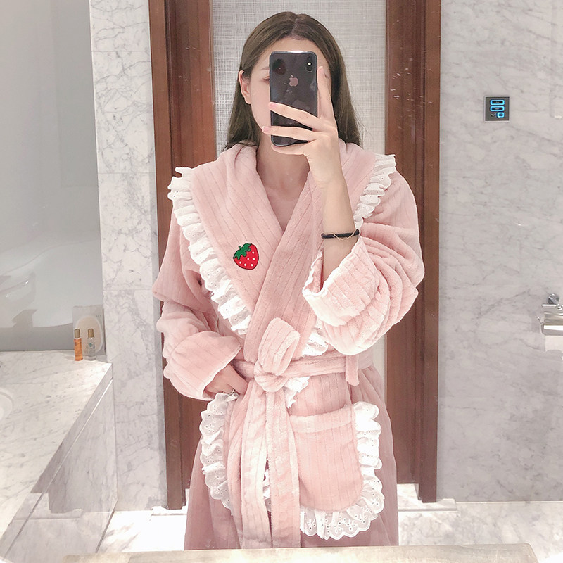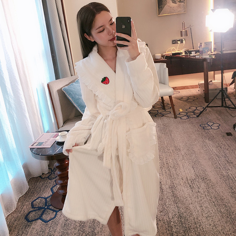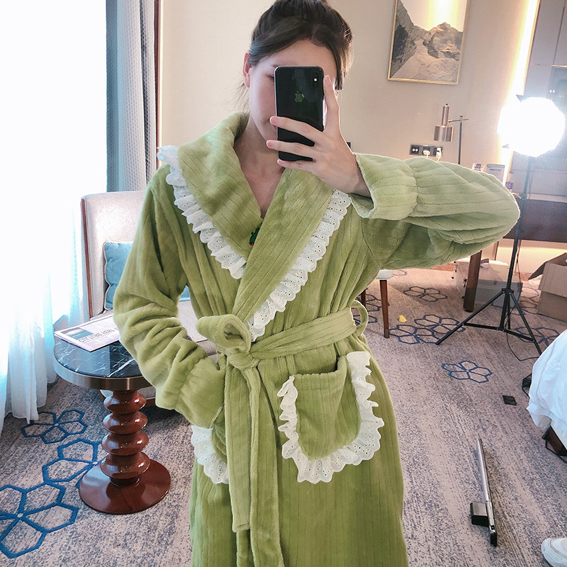 2021 new sleepwear women's winter long version Sexy coral suede bathing suit net red thickened flannel bathrobe home clothes