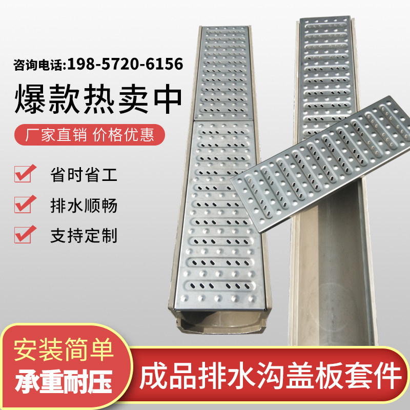 Finished linear drainage ditch kitchen trench drainage tank resin water groove cover plate Geshan drainage ditch U-shaped groove