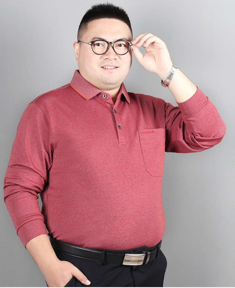 Add fat and increase long-sleeved T-shirt male middle-aged dad business casual lapel fat man loose fat man large size POLO shirt
