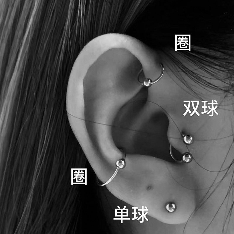 A pair of hearts, a pair of 8mm aperture (silver), a pair of 8mm aperture (black), a pair of 8mm aperture, a pair of balls (silver), a pair of 8mm aperture, a pair of balls (black), a pair of 10mm aperture