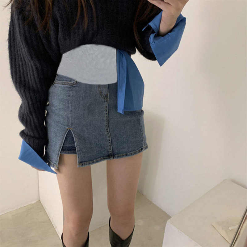Pregnant denim short skirt spring and autumn stretch show thin split a word wrapped hips bottom skirt support belly skirt autumn and winter