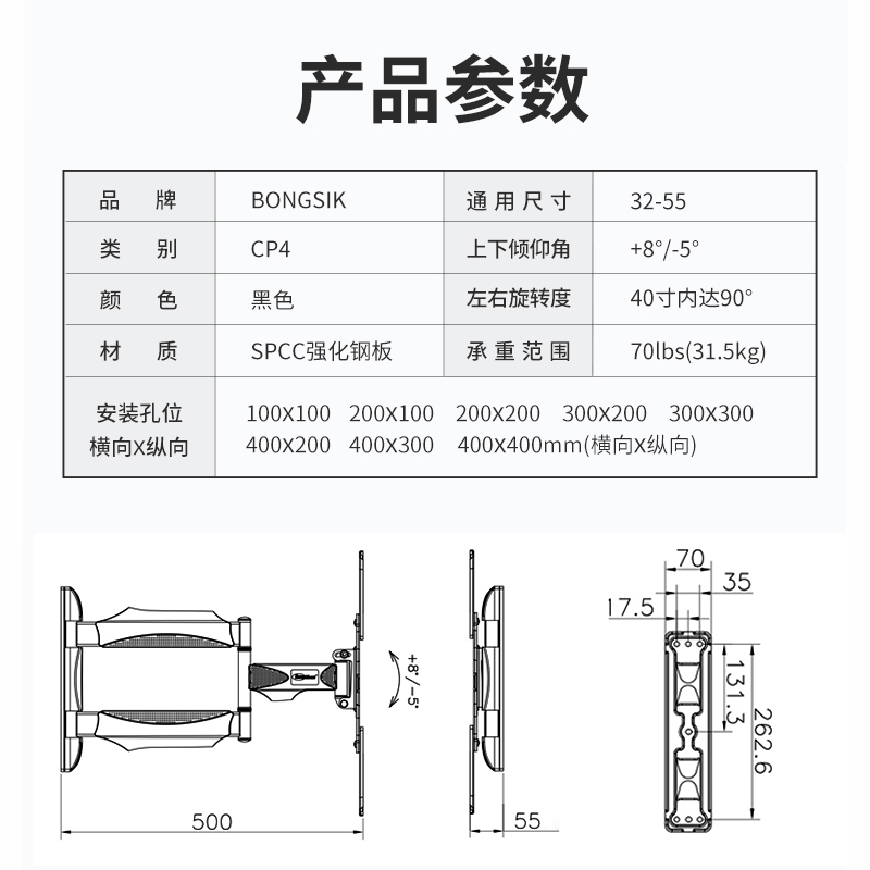 Universal TV Rack Flex Swivel Folding Bracket Universal Wall-mounted Condyventure TCL43 55 65 70 inch