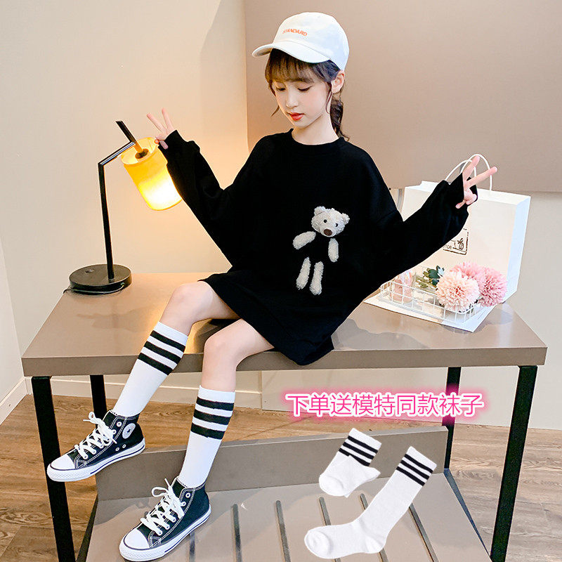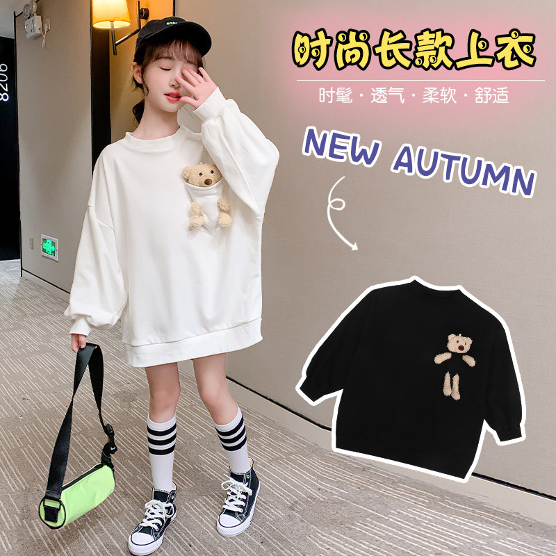 Girls' mid-length sweater bottoming shirt autumn clothes children's fat spring and autumn girls sweater skirt large size clothes loose and thin