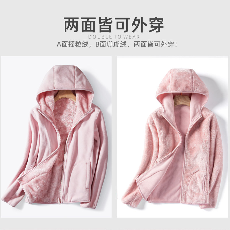 Wear fleece fleece fleece jackets for men and women in autumn and winter plus plus thick coral fleece hooded cardigan sweatshirt jacket