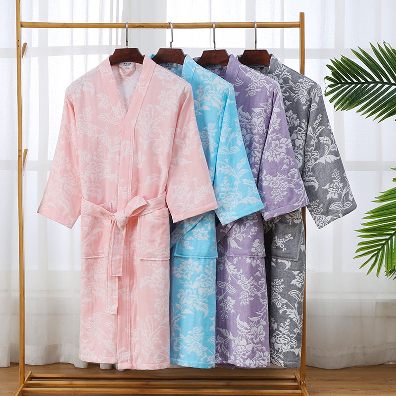 Pure cotton gauze bathrobe female Summer can wear a bath towel type yukata home water absorption quick-drying beauty salon men's nightgown