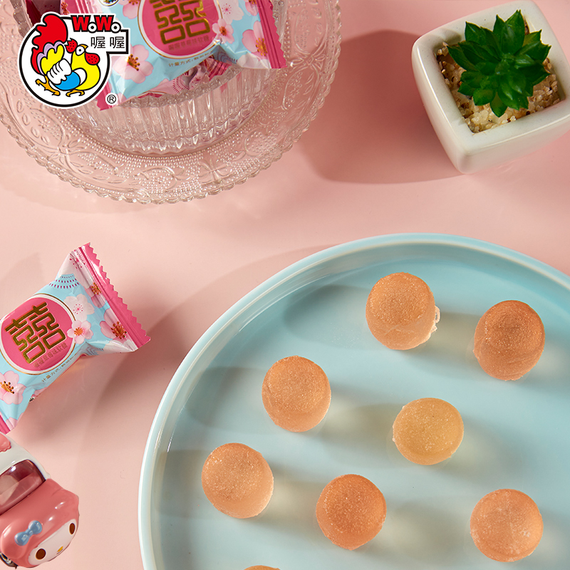 Oh wow strawberry fruity soft sugar rubber mesh red snacks bulk wedding happy candy New Year goods wholesale