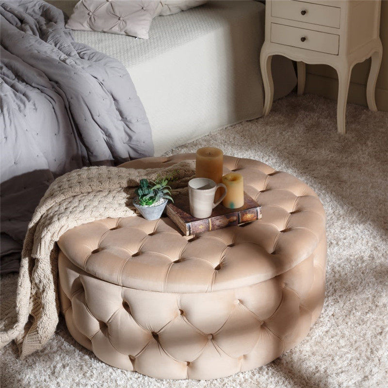 Nordic light luxury velvet cloakroom beige gray shoe changing stool bedroom storage storage stool living room round foot sofa