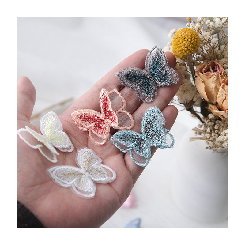 Solid Double Layer Butterfly Embroidery Breaking Hole Patch Augen Yarn Lace Cloth Post Handmade Diy Clothes Wedding Dresses Decorative Accessories