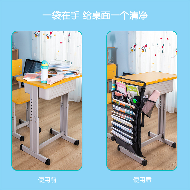 Deli hanging book bag Desk storage bag Desk hanging bag side shelf High school student multi-function storage bag Student hanging table side book bag Middle school student Korean large capacity desktop table side bag