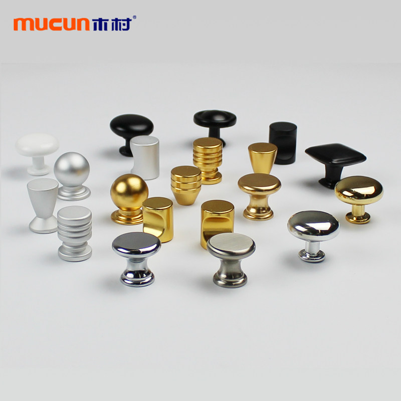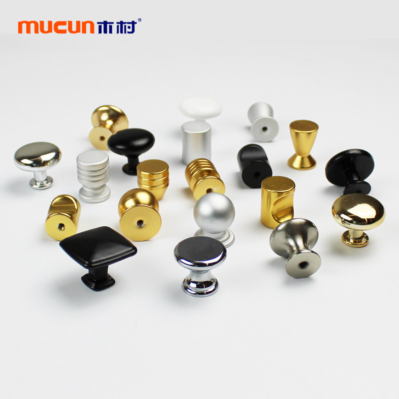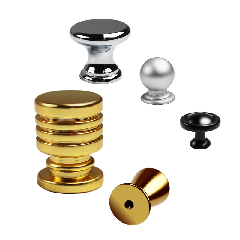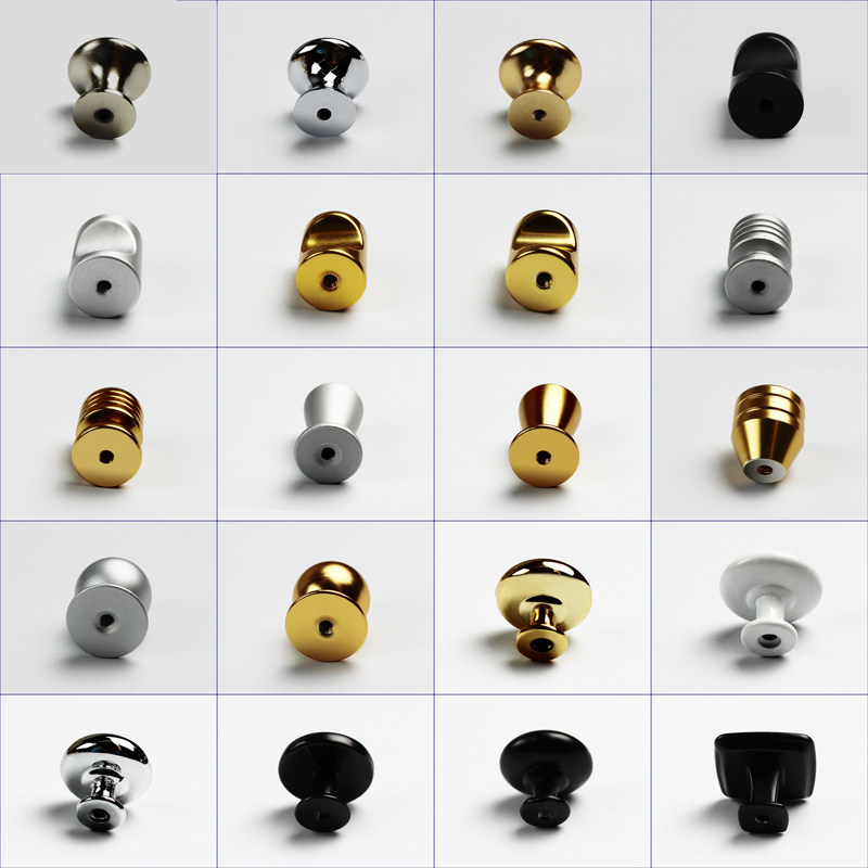 Single-hole round handle furniture cabinet door handle spherical thumb golden black bright chrome alumina alloy button with small handle