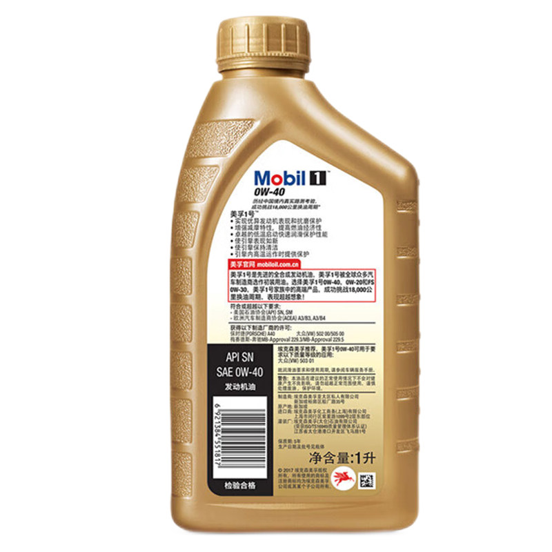 Mobil 1 Xiaojin Mobil 1 0W40 Full Synthetic Oil SN Automotive Lubricant 1L
