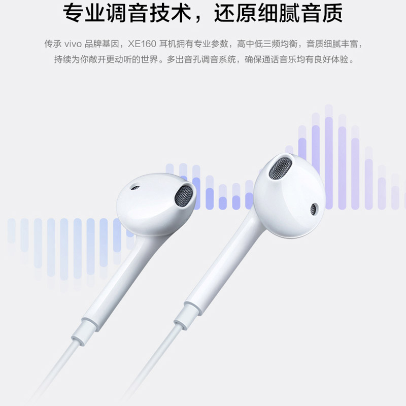 vivo headphones wired original dress XE160 semi-in-ear high tone earplug 3 5mm connector Android line control official x50pro computer K song eat chicken universal s7 phone round hole