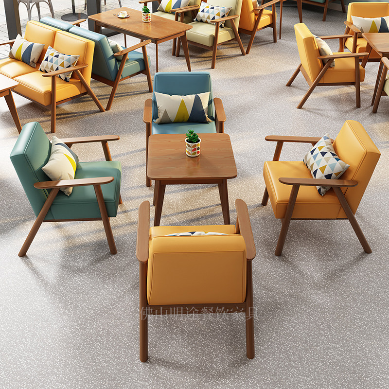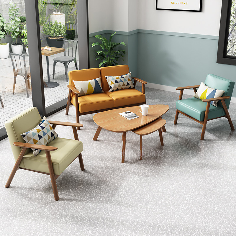Nordic Cafe Dessert Milk Tea Shop Solid Wood Table and Chair Combination Double Negotiation Leisure Reception Book Bar Sofa Commercial