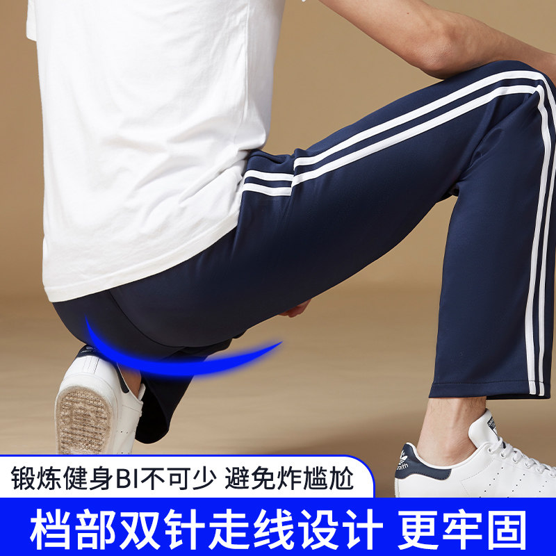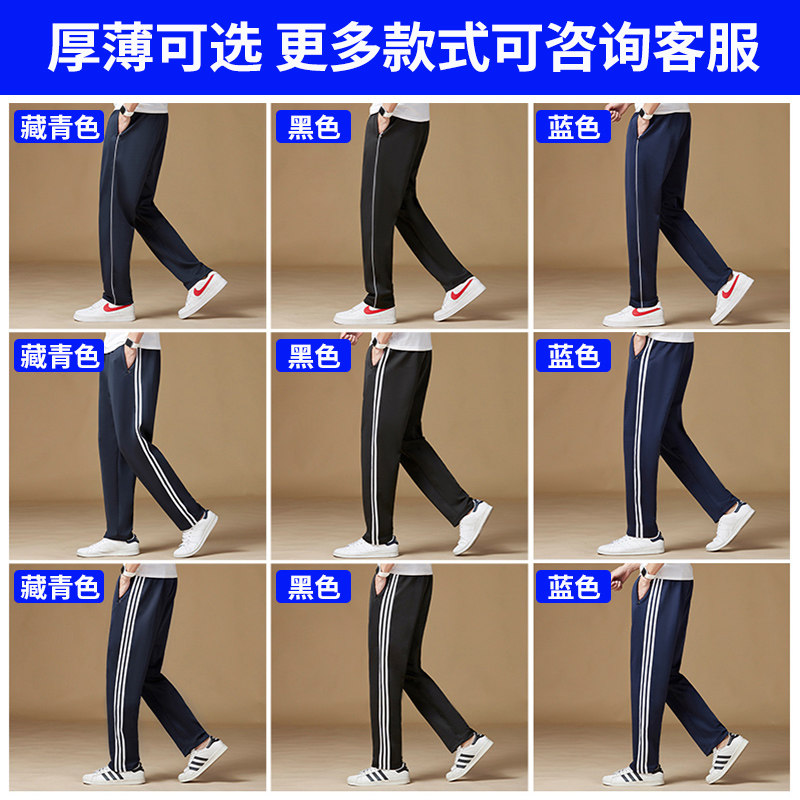 School Uniform Pants Men's Autumn Winter Junior High School Students High School Students Two Bars Dark Blue Plus Suede Thickened Hide Cyan School Pants-Taobao