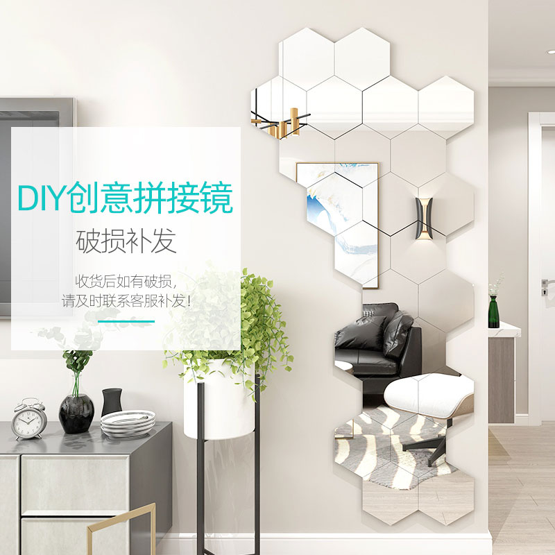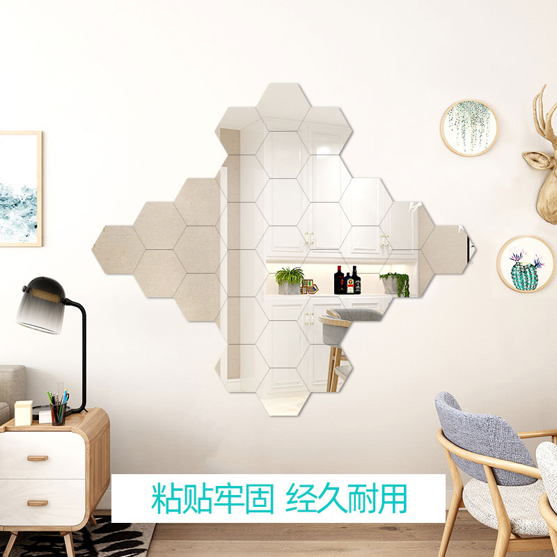 Hexagonal mirror wall self-adhesive stitching full-body mirror creative wall decoration diamond-shaped art entrance door